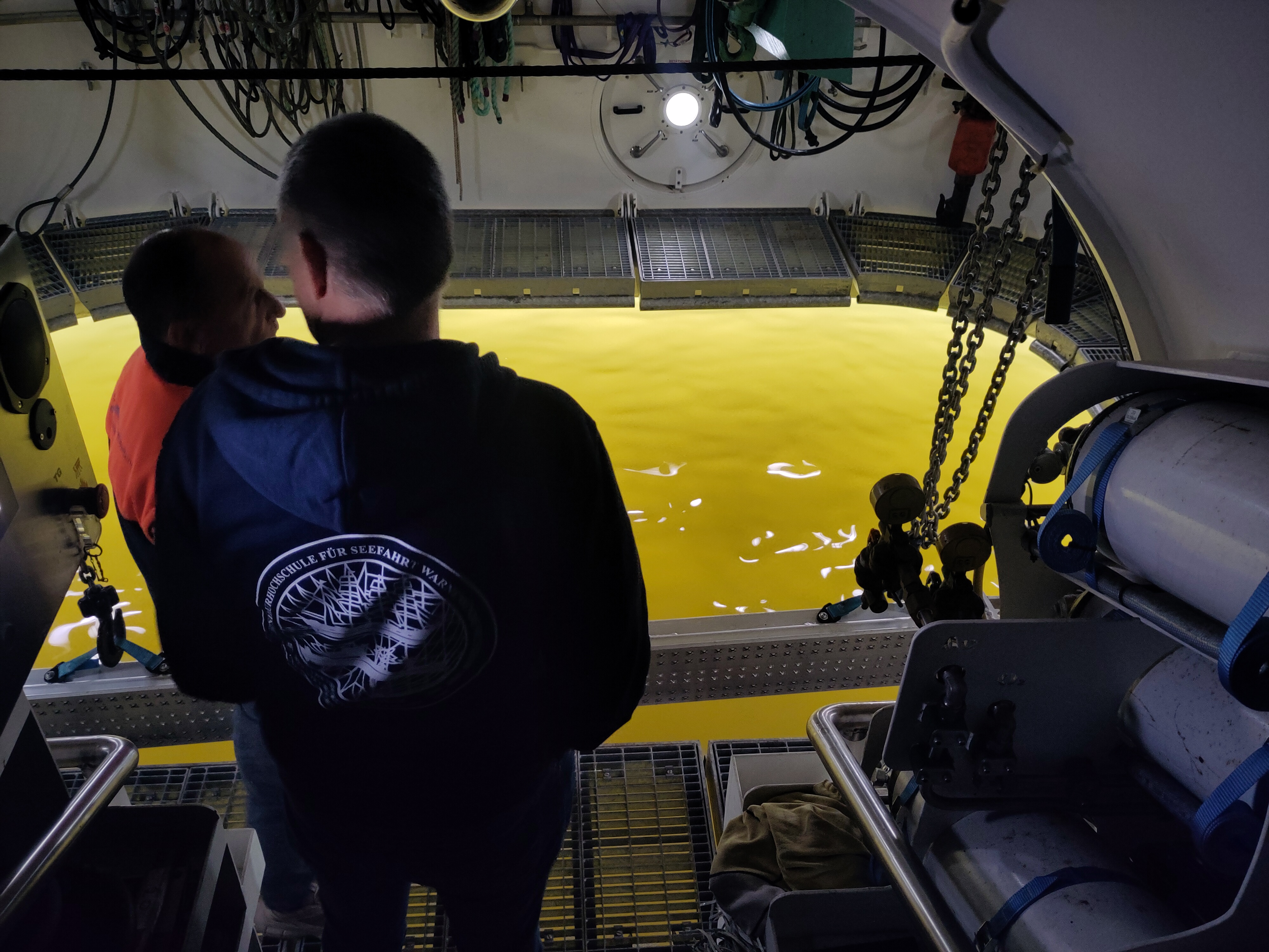 From August 18 to 22, employees of the Control Engineering Chair at the Department of Design and Operation of Maritime Systems at the Technical University of Berlin were guests at the Water and Shipbuilding Research Institute (VWS). Experiments were conducted with an ROV (Remotely Operated Vehicle) at the VWS. The aim was to test the automation of an ROV magazine, into which the vehicle will dock and undock independently in the future.