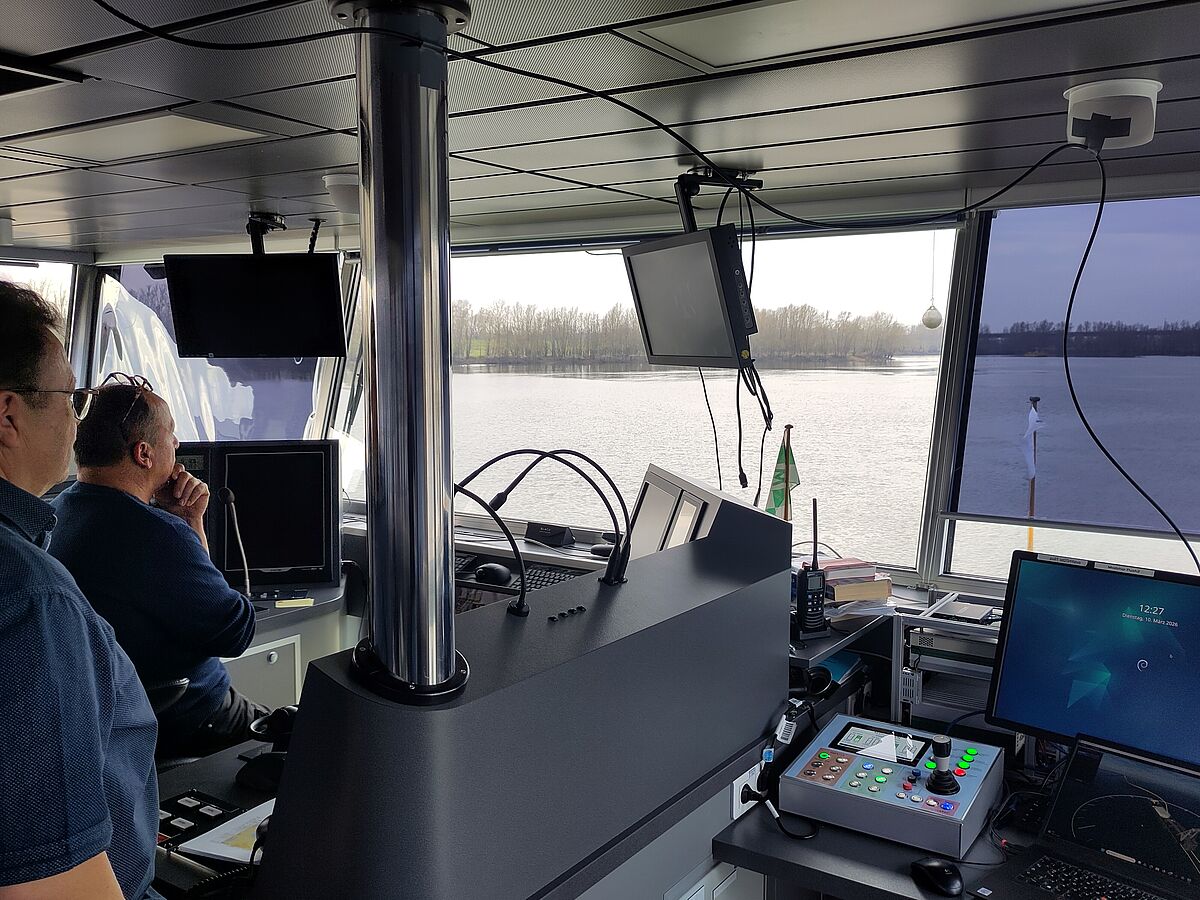 In the current project phase, the capabilities of the developed assistance system are being tested on a model scale under real conditions in the port of Rostock.