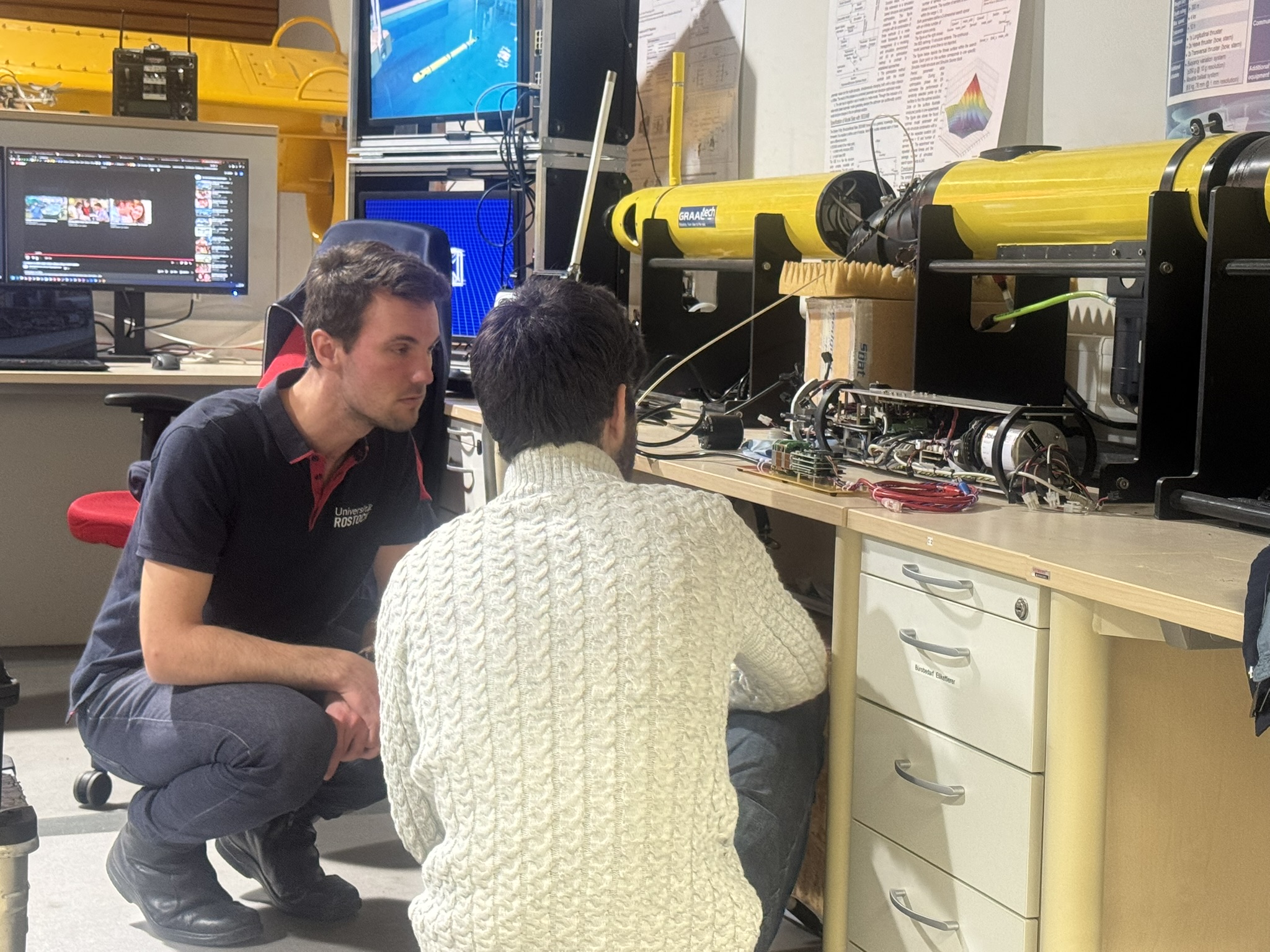 Am 24.06.2016 konnte der Lehrstuhl Regelungstechnik Dr. Vladimir Djapic vom Unmanned Maritime Vehicle Laboratory (UMV LAB) des SPAWAR System Center – Pacific in San Diego begrüßen. Neben einer Besichtigung des Anwendungszentrums Regelungstechnik fand ein gegenseitiger Austausch von Erfahrungen mit Unterwassertechnik und -fahrzeugen mit der maritimen Forschungsgruppe des Lehrstuhls statt. Am Nachmittag stellte Dr. Djapic aktuelle Forschungsthemen am UMV LAB vor. Den Abschluss bildete eine Führung im Marine Science Center in Hohe Düne.